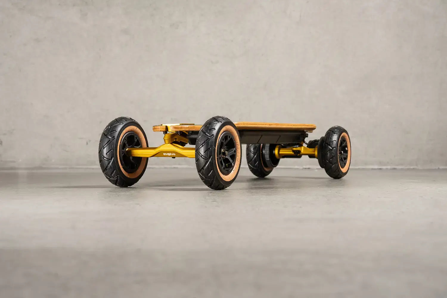 Every Fusion rolls out with a premium setup straight from the box. You get Evolve’s signature Gold SuperCarve 2.0 trucks, designed for ultimate stability and control at speed. Paired with tanwall all-terrain tyres and gold precision bearings, this board doesn’t just ride smooth, it looks the part too. It’s our cleanest factory build yet, with style and substance in every detail.